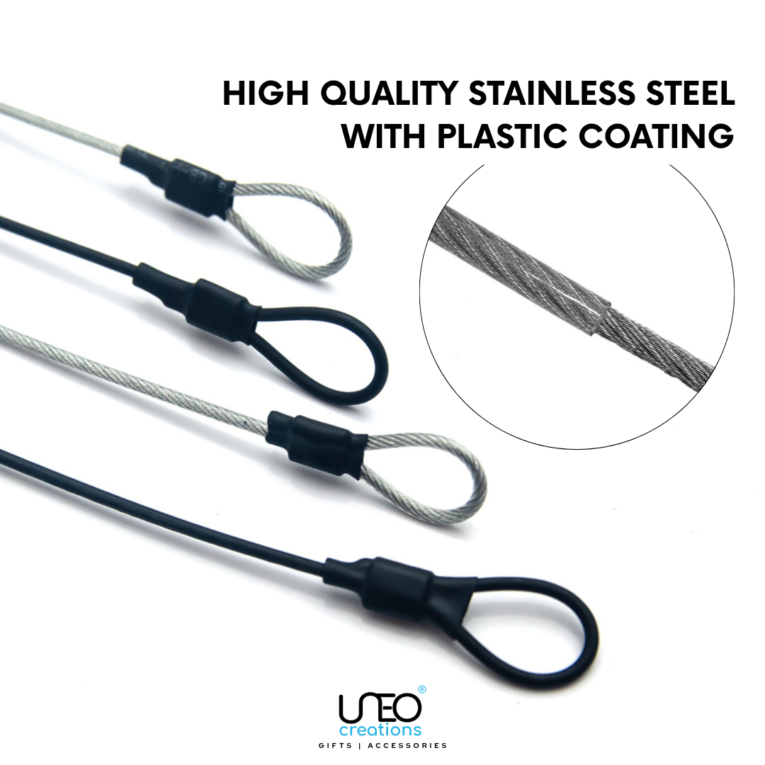 Made from durable stainless-steel wire, these cords offer strong protection while remaining lightweight and flexible. The protective coating helps prevent scratches and improves durability for outdoor use.