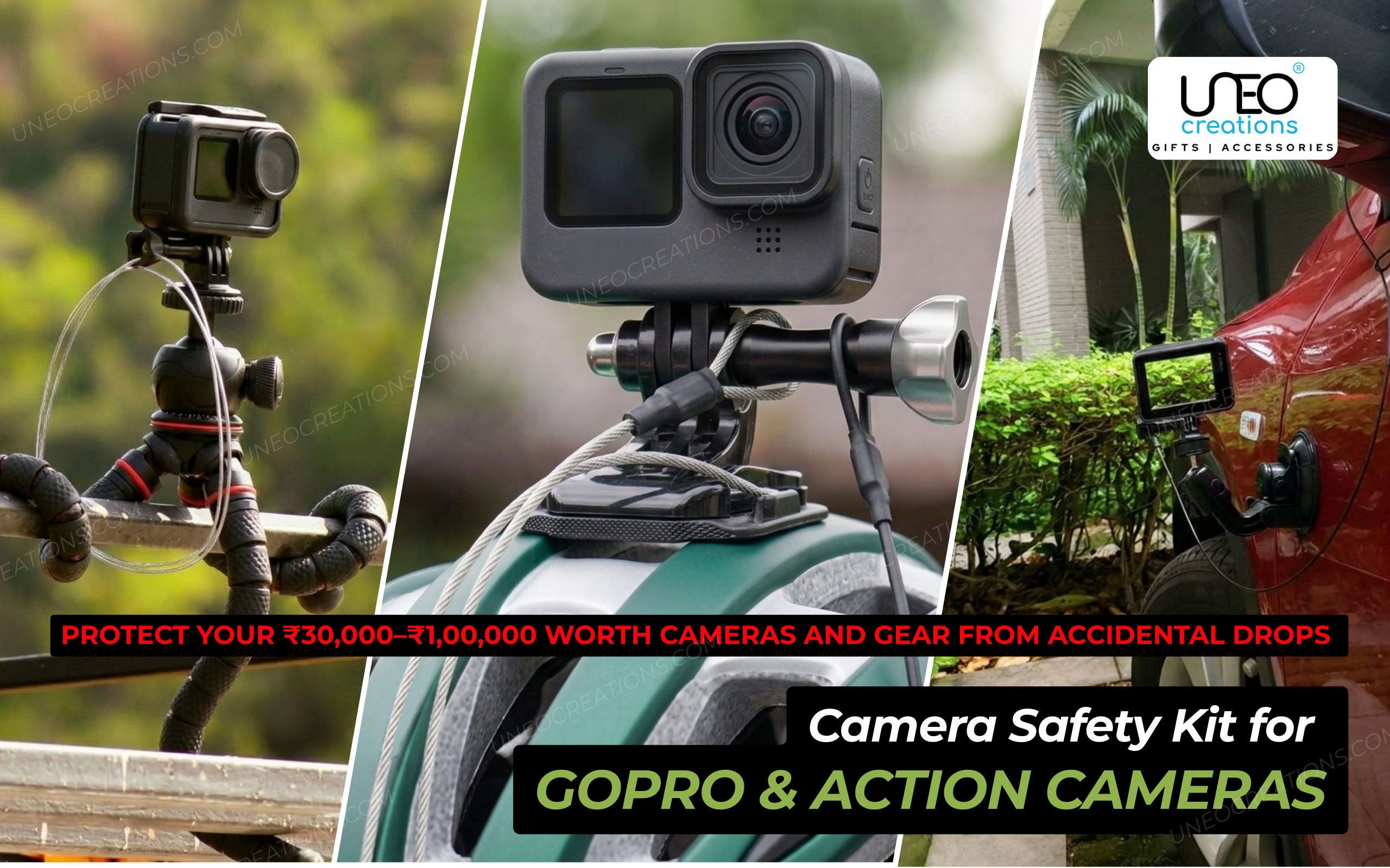 Protect your ₹30,000–₹1,00,000 camera from accidental drops with this Premium Camera Safety Kit for GoPro & Action Cameras.