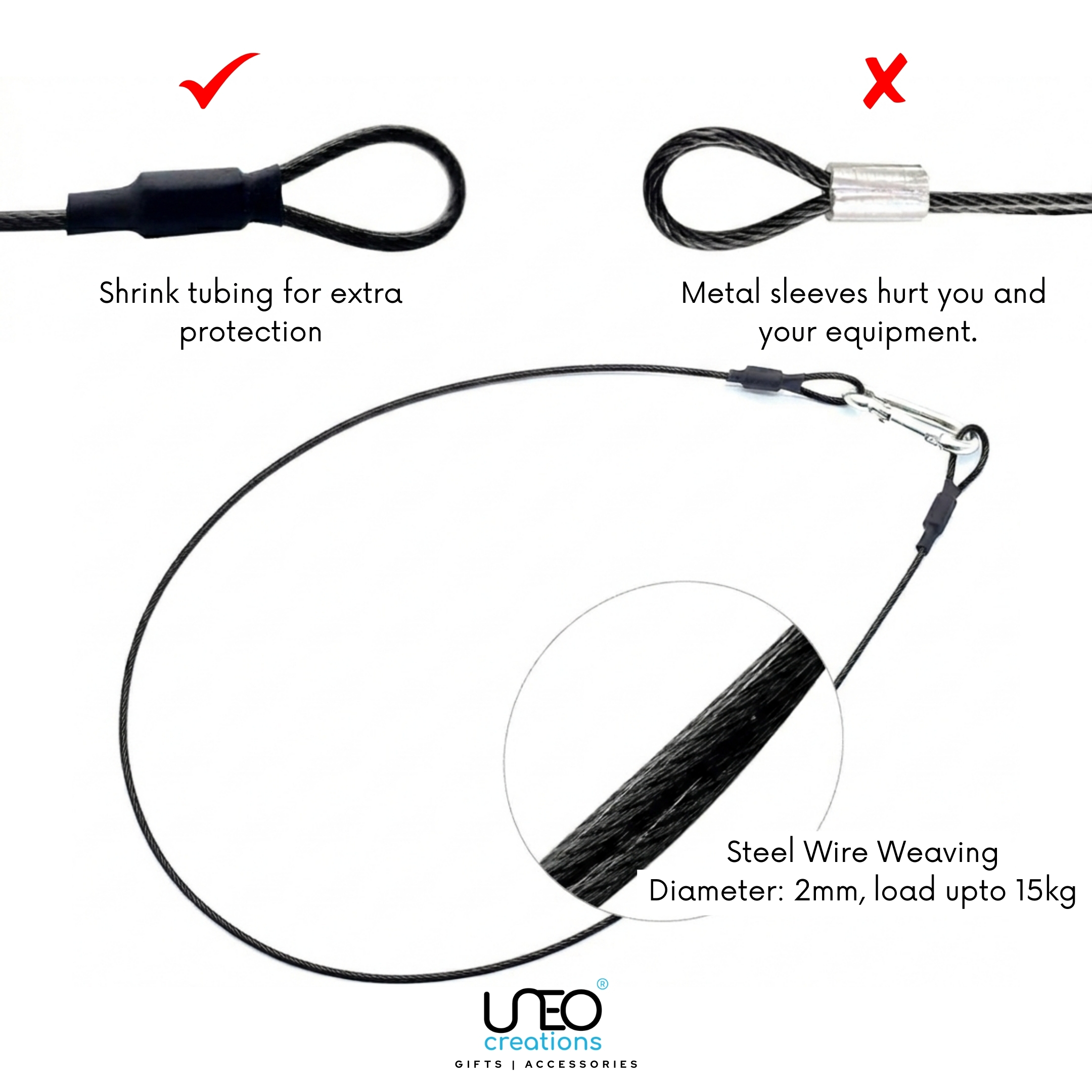 Crafted from premium-grade stainless steel, our tether wire is built for strength, durability, and long-lasting performance. The corrosion-resistant cable, combined with high-quality connectors, ensures a secure hold you can trust protecting your camera gear from accidental drops in any environment.